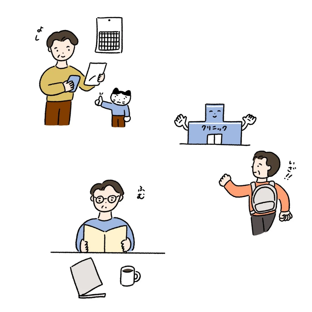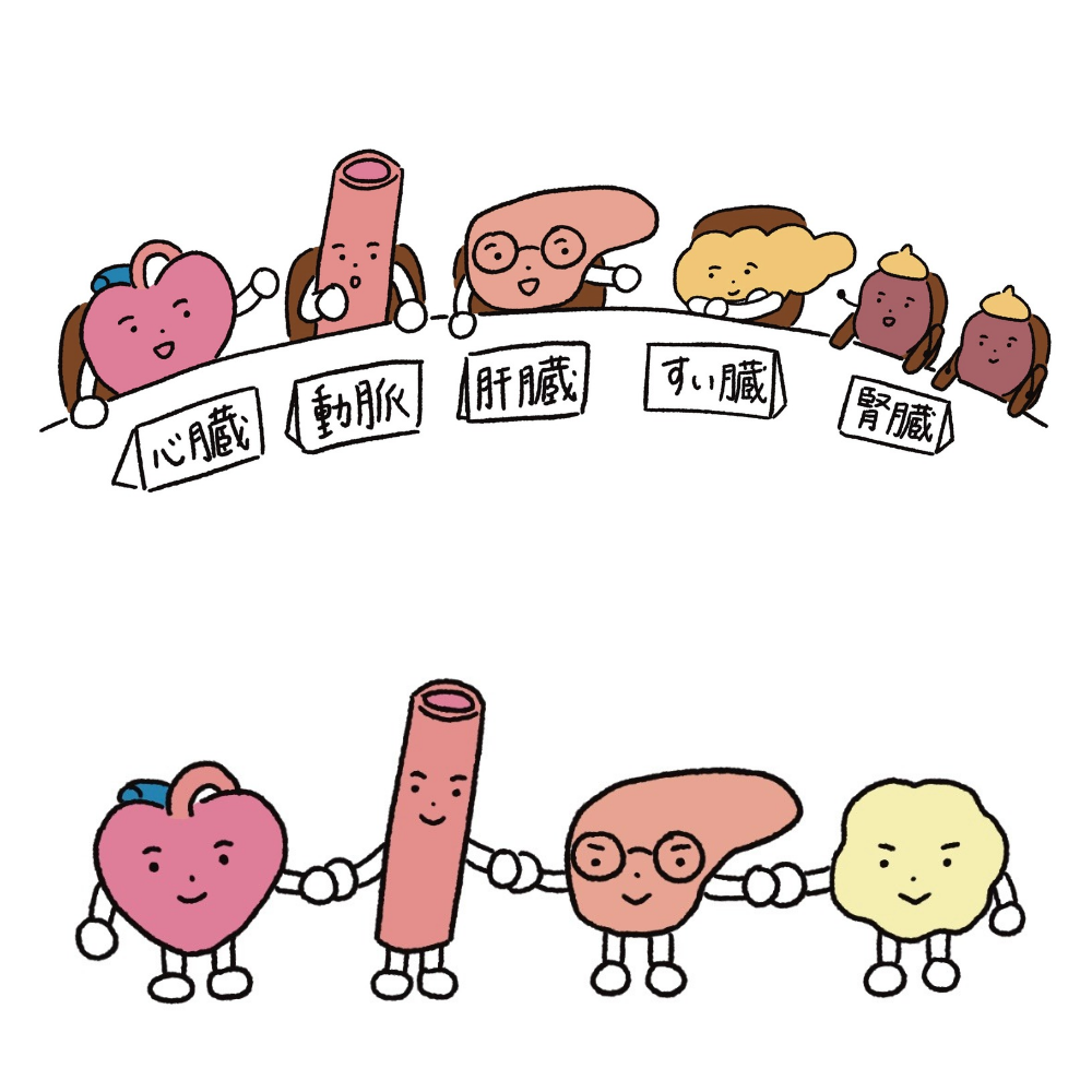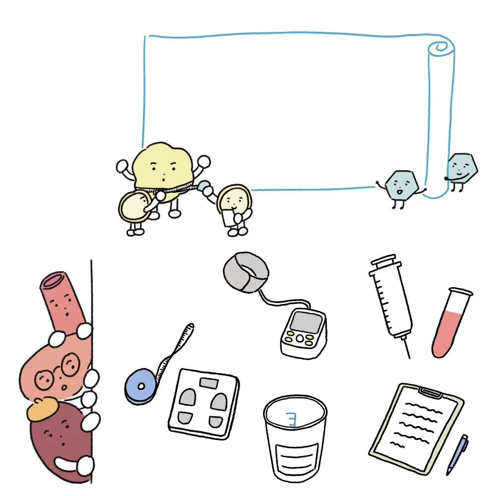50~60代向けに配布される定期健診リーフレットのイラストを制作しました。